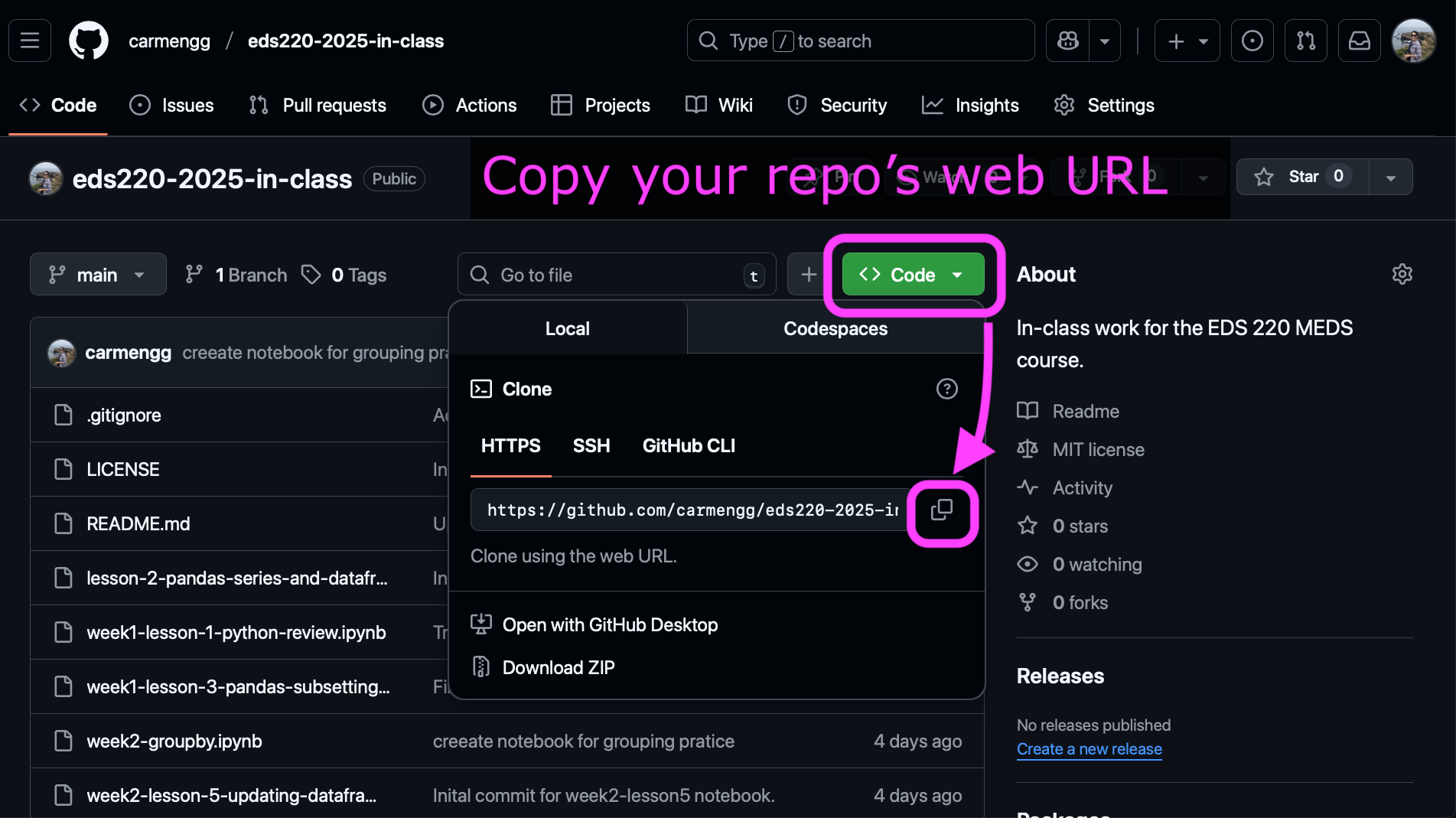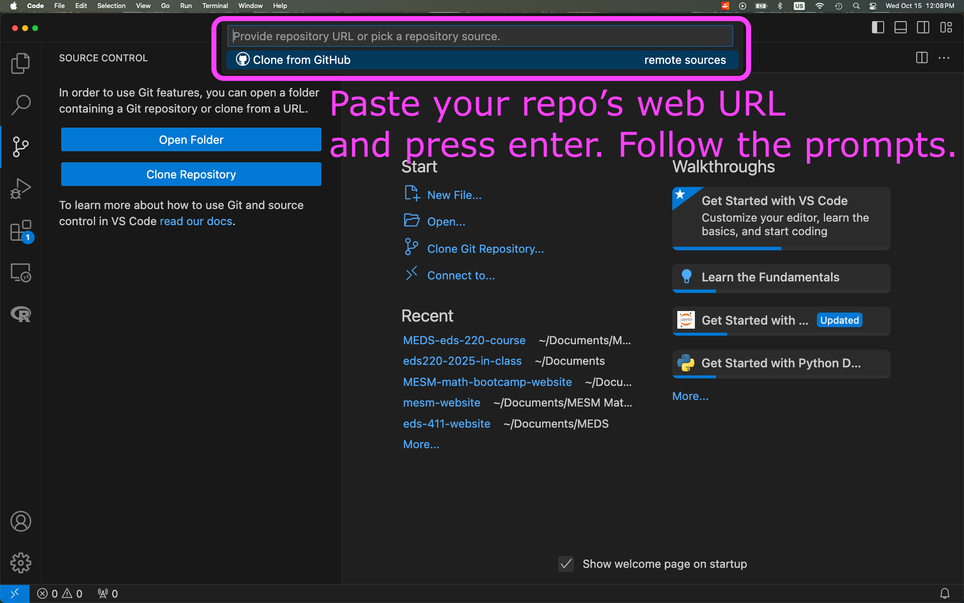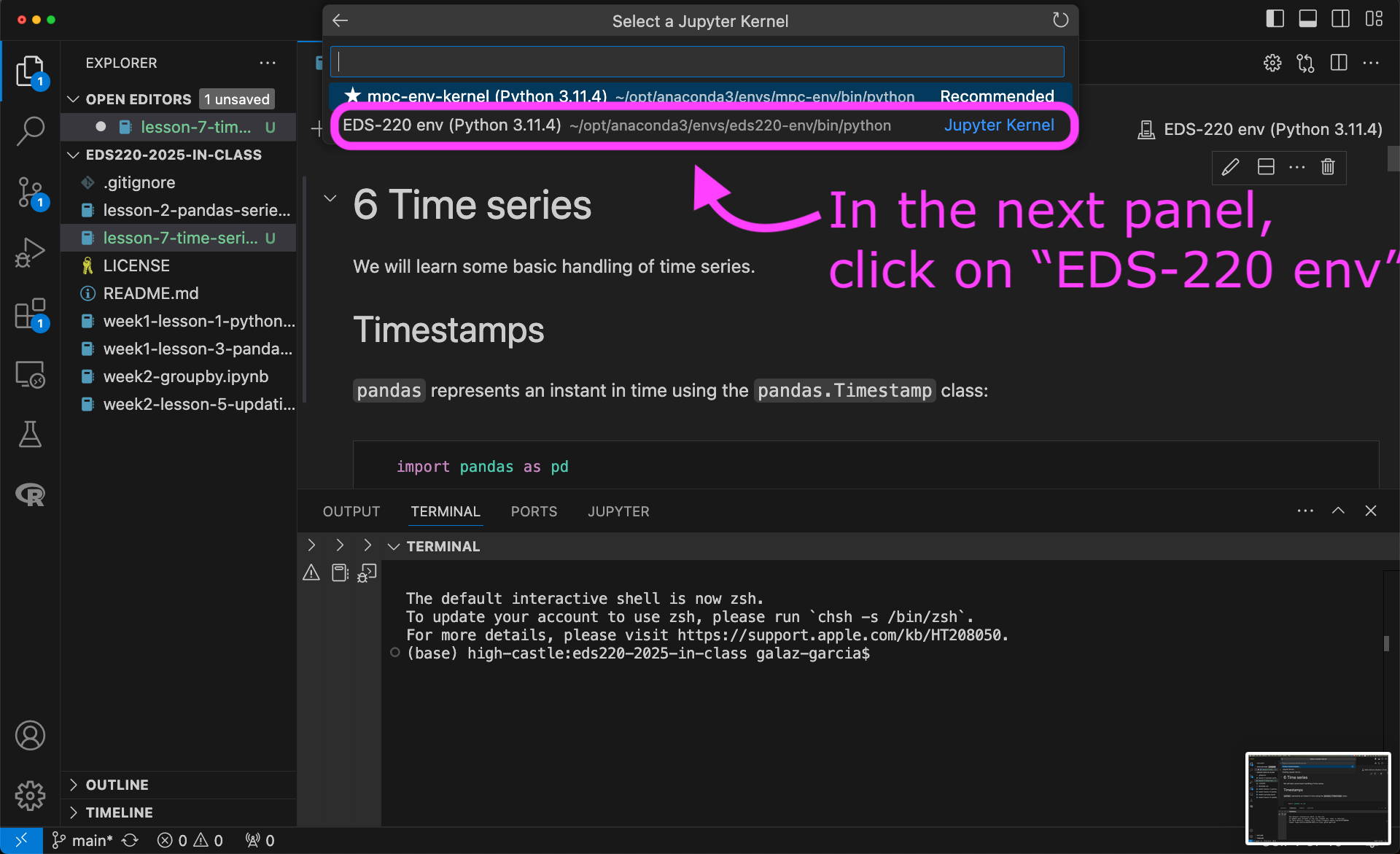 directory: https://github.com/MEDS-eds-220/MEDS-eds-220-course/blob/main/eds220-env.ymlOpen a bash terminal inside VSCode and in it: