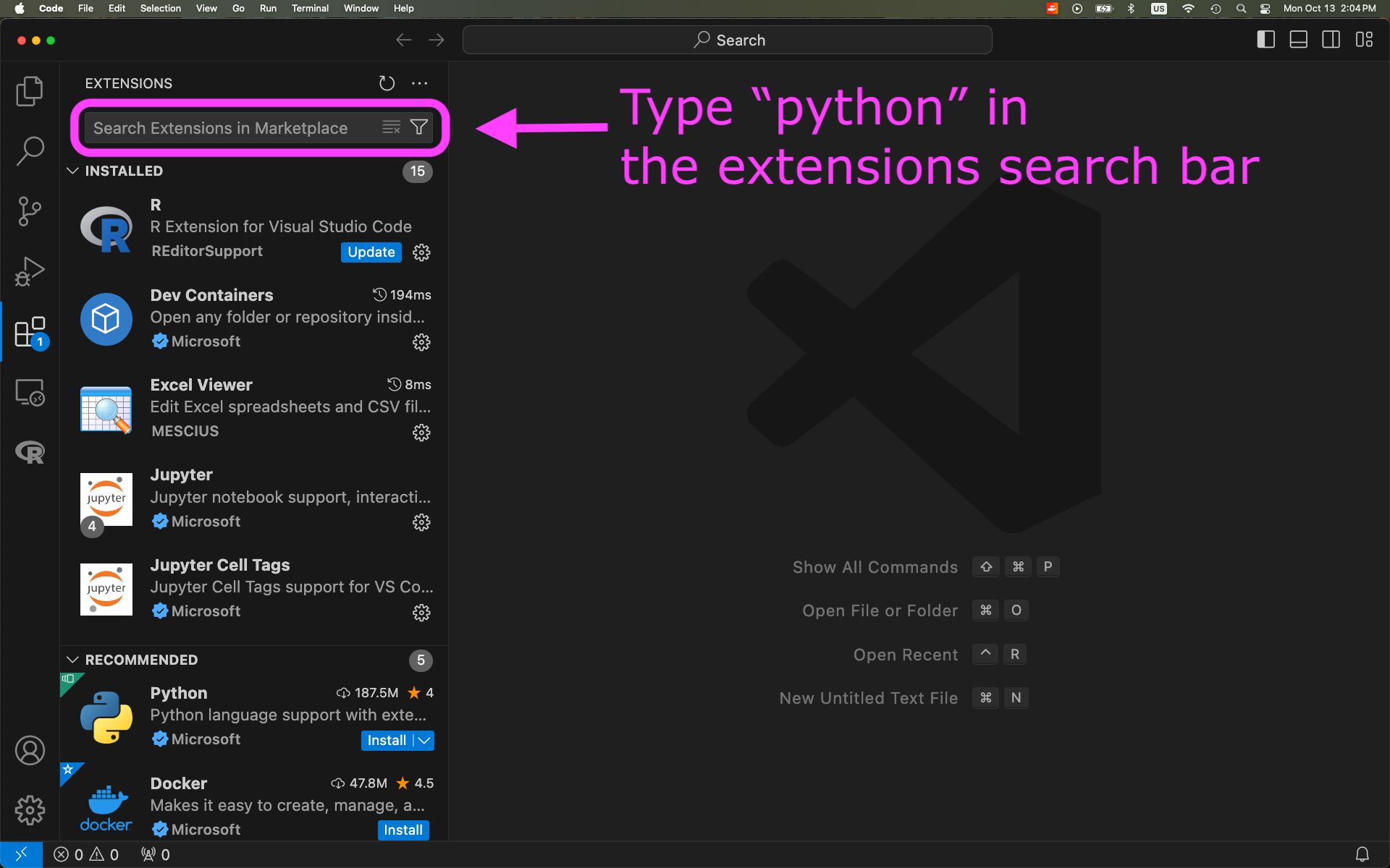 - Set up VSCode to work on personal computers, without the course conda environment.